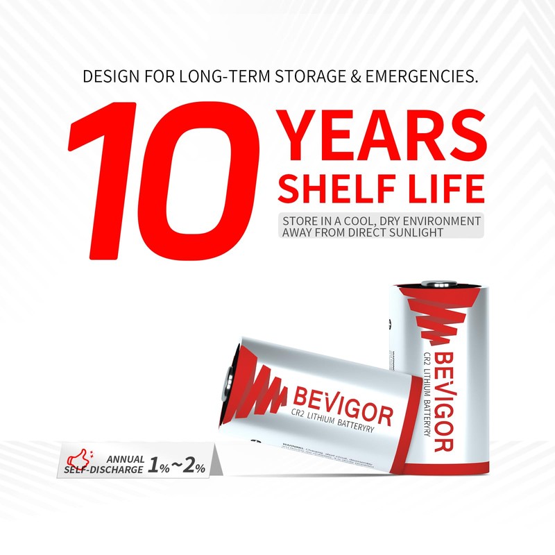 - 【Long-Lasting Power with 900mAh High Capacity】—Engineered for high-drain devices, Bevigor 3V CR2 lithium battery delivers 3-5X longer runtime than standard alkaline batteries. Its 900mAh capacity ensures stable, high-performance output for energy-intensive electronics like digital cameras and laser rangefinders.