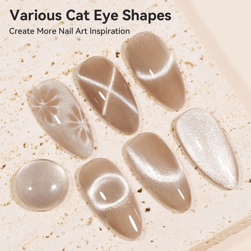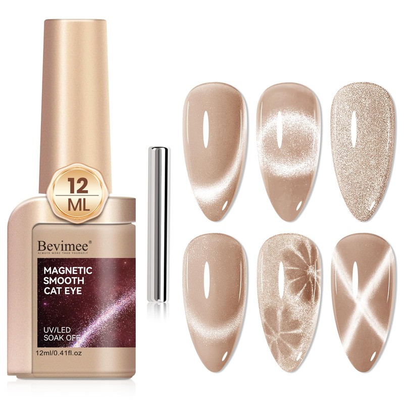 - Cat Eye Gel Polish with Magnetic Stick: Bevimee provides one piece of stong magnetic stick for the glitter cat eye gel, you can use it to get different cay eye effect, like wide cateye, smile effect, slash effect, starry sky effect, etc