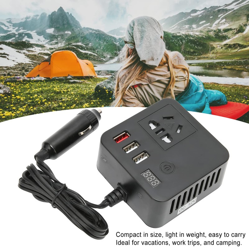 3. Vielseitig einsetzbar: Der 150-W-Auto-Wechselrichter ist klein und kompakt, hat ein geringes Gewicht und ist leicht zu transportieren, wodurch er sich ideal für Urlaub, Geschäftsreisen und Camping eignet.