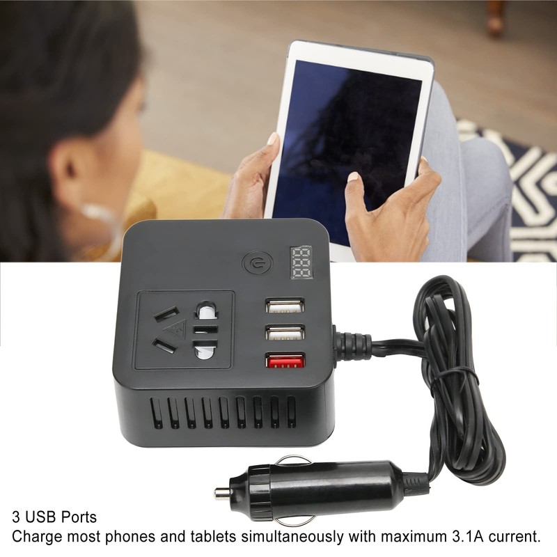1. 3 USB-Anschlüsse: Der hochwertige 150-W-Auto-Wechselrichter verfügt über 3 USB-Anschlüsse, um die meisten Telefone und Tablets gleichzeitig mit einem Strom von maximal 3,1 A aufzuladen.