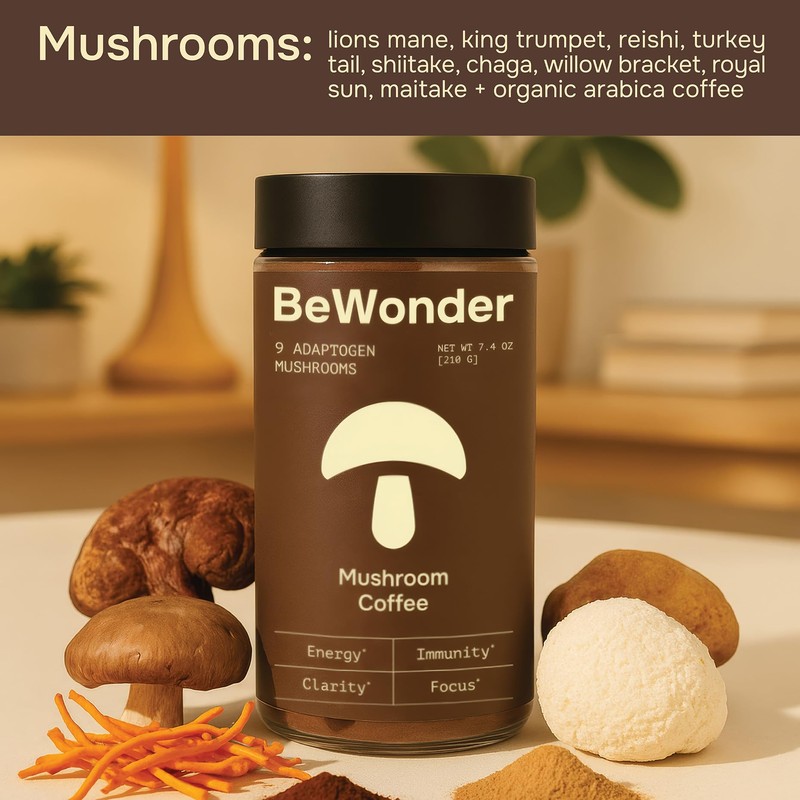 - Caffeine with a Purpose:?While our mushroom coffee contains natural caffeine from organic coffee powder, the addition of adaptogenic mushrooms means you may need less to feel more. Enjoy productivity with a smaller serving size.