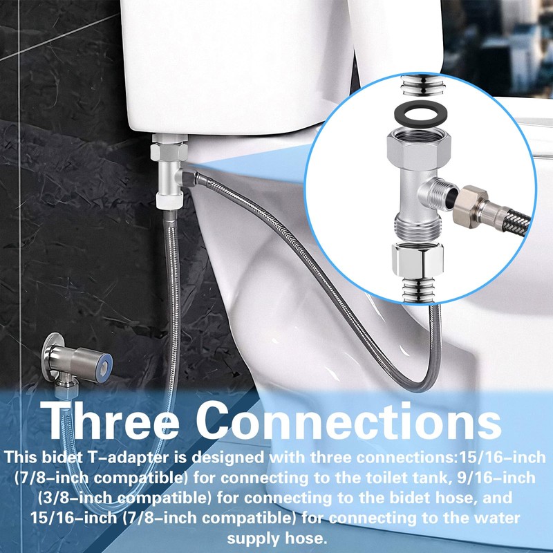 - 【Sizing Information】The thread sizes for bidet T-connectors are 7/8" - 7/8" - 3/8" (also known as 15/16" - 15/16" - 9/16"). To confirm the correct size, measure the outer diameter of the tank threads or check the size markings on the inlet pipes.