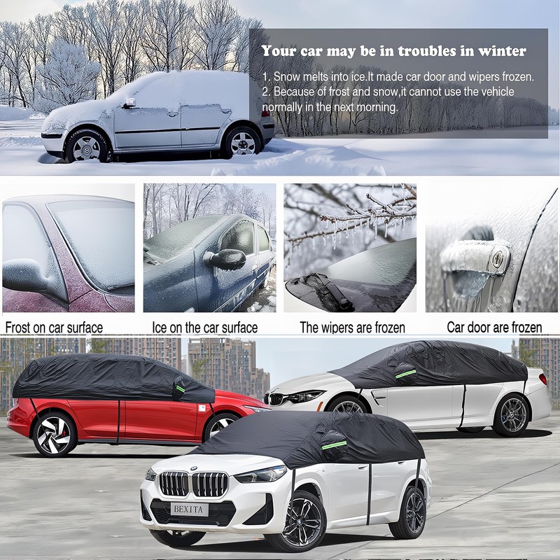 BEXITA BEXITA Halbgarage Auto Winter Abdeckplane wasserdichte Outdoor Auto Autoabdeckung Halbe Autoplane Auto Scheibenabdeckung Front und Heckscheibe Abdeckung