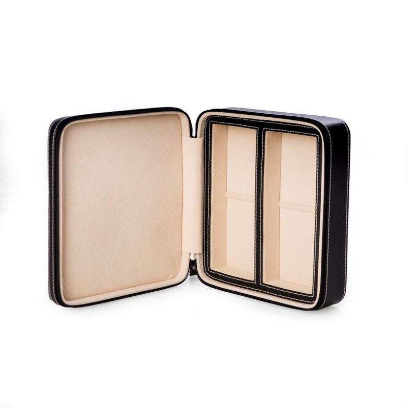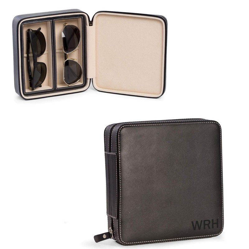 - For the stylish traveler. With this form fitted genuine leather two glasses case features scratch resistant velour lining that keep glasses safe and protected and zipper closure that holds glasses in place.