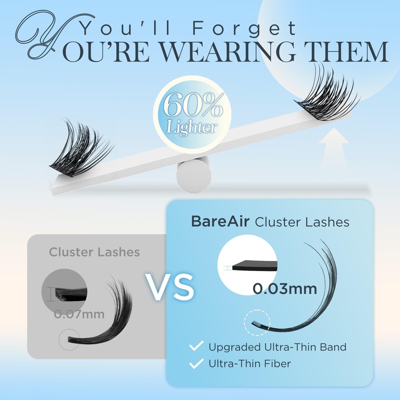 - 60% Lighter Than Regular Cluster Lashes - BEYELIAN ultra-thin cluster lash extensions feel weightless and comfy—no pressure, no poke, just flawless all-day wear