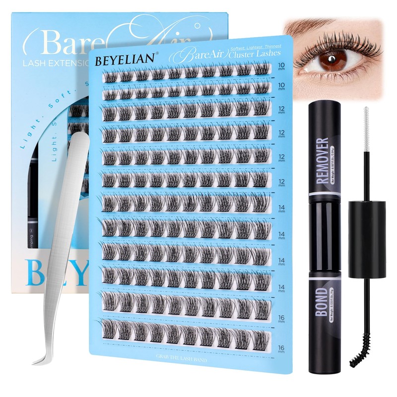 - All-in-One DIY Lash Kit for Beginners - Includes BEYELIAN ultra-soft cluster lashes + lash bond and remover + a precise tweezer for a complete, easy-to-use at-home extension system