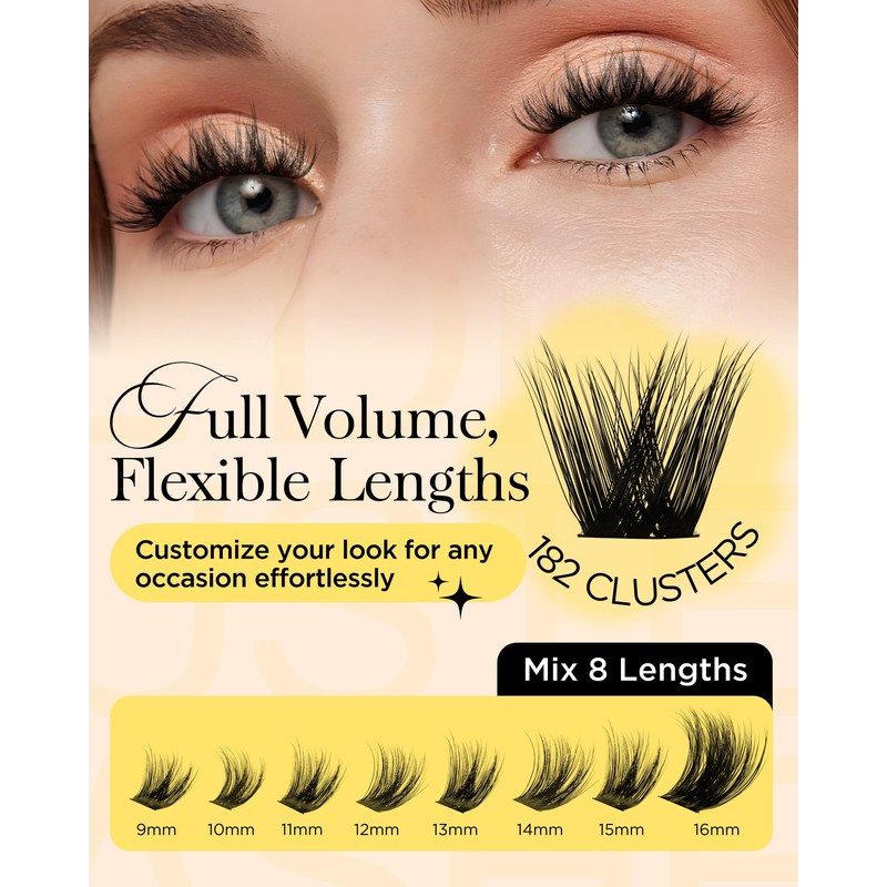 - Beginner-Friendly & Customizable: Designed for easy DIY application, even for beginners. Mix and match lash extension clusters in 8 lengths to create your unique style, whether it's natural or dramatic, tailored to your look and mood
