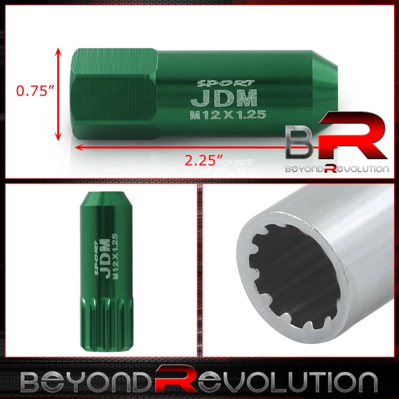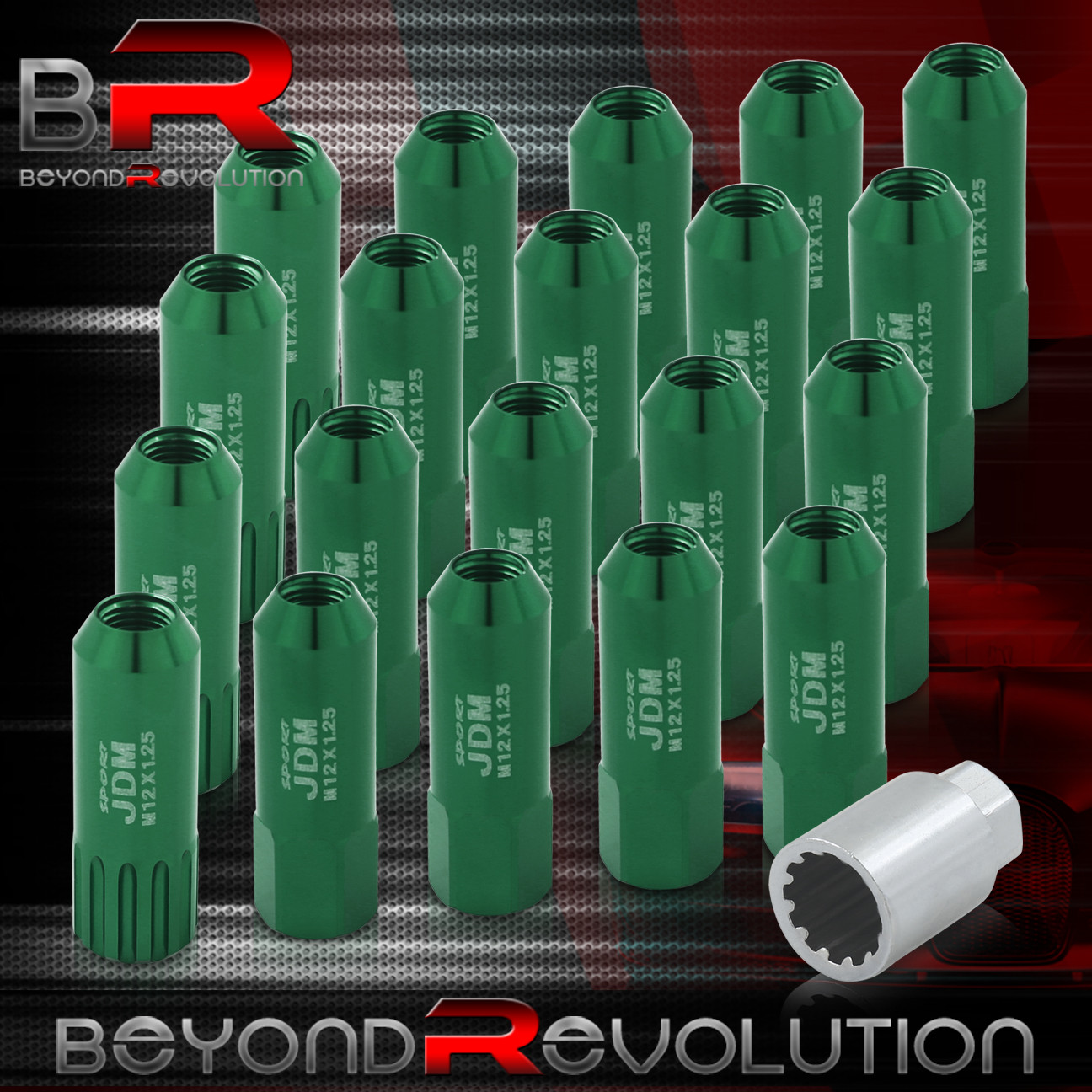 Beyond Revolution For Nissan 12mmx1.25mm Locking Lug Nuts Track Extended Open 20 Pieces Unit Green