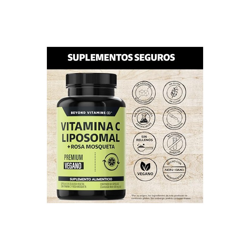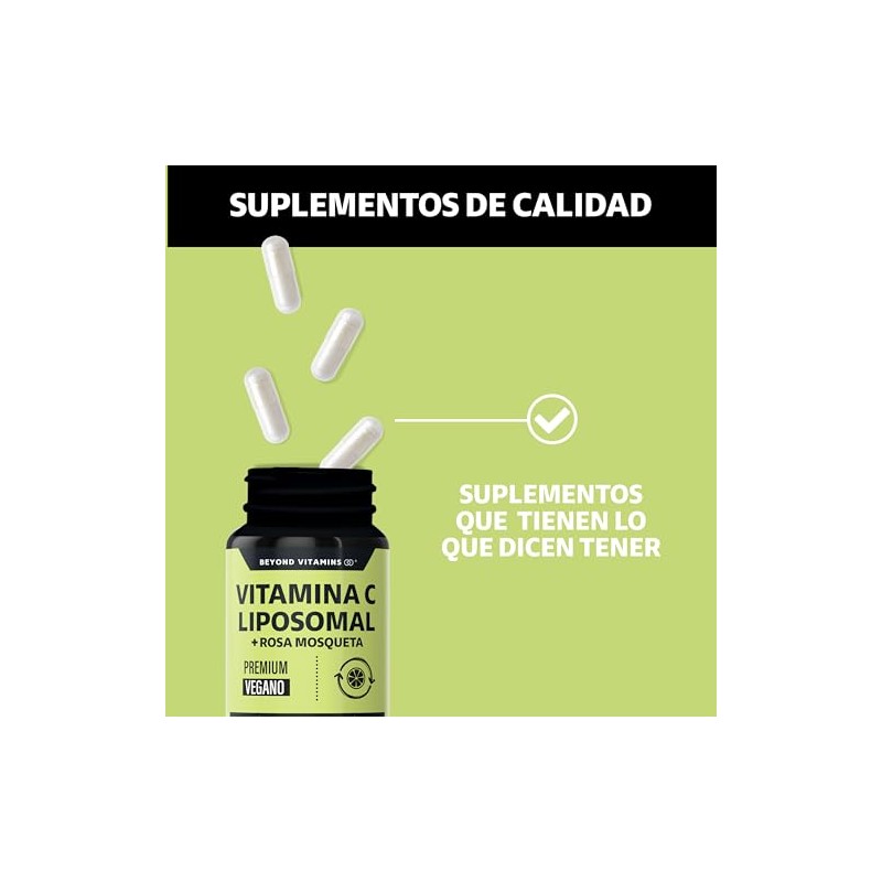 Beyond Vitamins Vitamina C Liposomal 300mg Potenciado con Rosa Mosqueta, 60 Cpsulas Veganas - Producto Original de Alta Calidad, Entrega Rápida y Seg