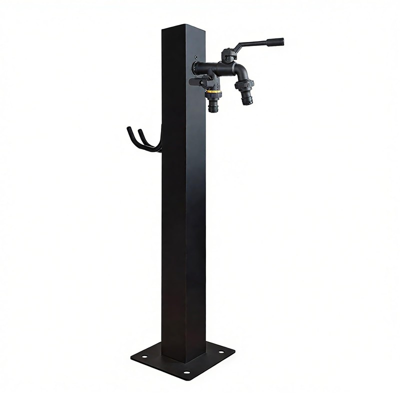 • Hose Rack Design: The vertical side of hose water column garden tap is equipped with a metal hose rack, with a reasonable height design. It can neatly roll the hoses, effectively avoiding damage caused by curling and bending due to random placement, and bidding farewell to the trouble of disorderly storage