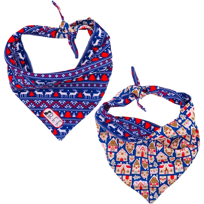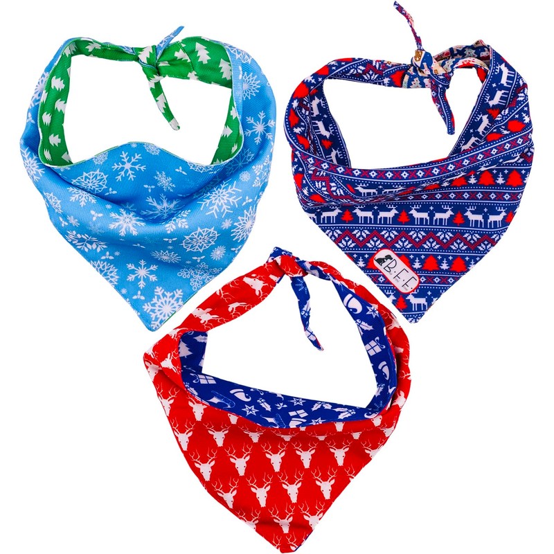 BFF Set 3 Bandanas para Perro Doble Vista 6 Looks Diferentes. Paliacates artesanales para Mascotas, Accesorios para Perros pequeños, medianos y Grandes. Regalo Paquete 3 pañuelos (Diciembre, Medium)