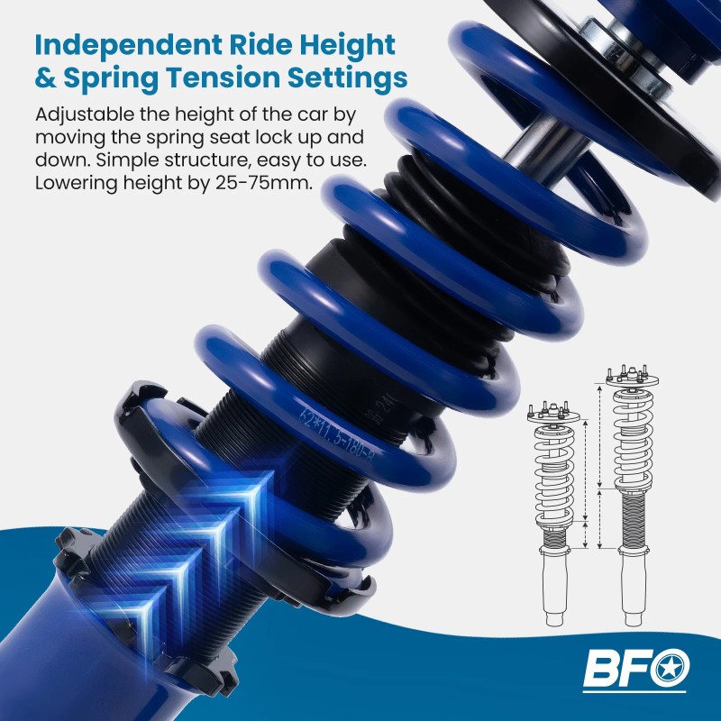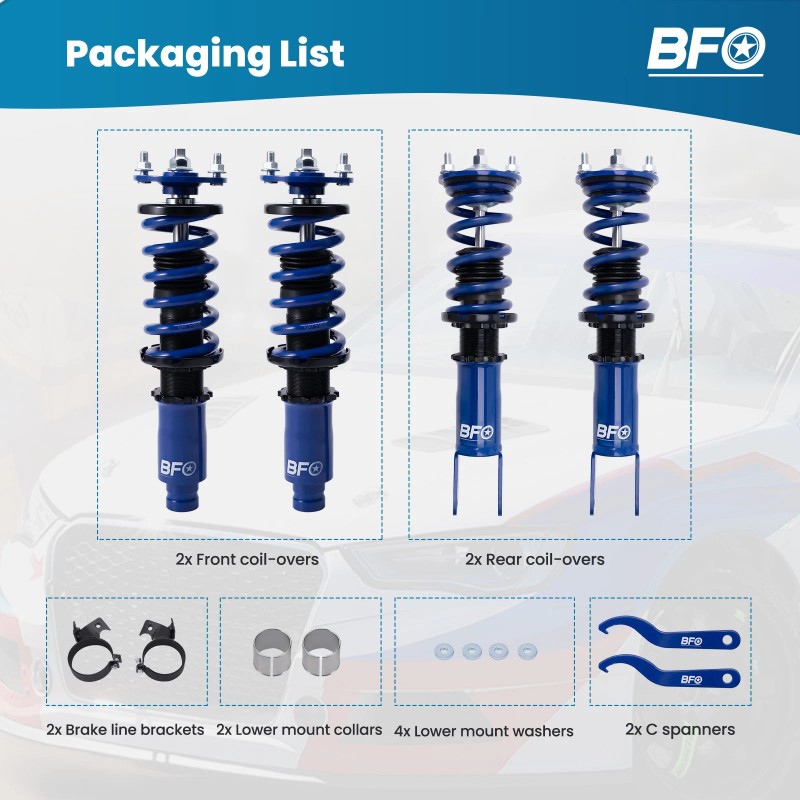 BFO coil-overs strike the perfect balance between aesthetics, performance, and comfort. The coilovers from BFO are a street-friendly and affordable option for those not looking to explode their bank accounts for mods.