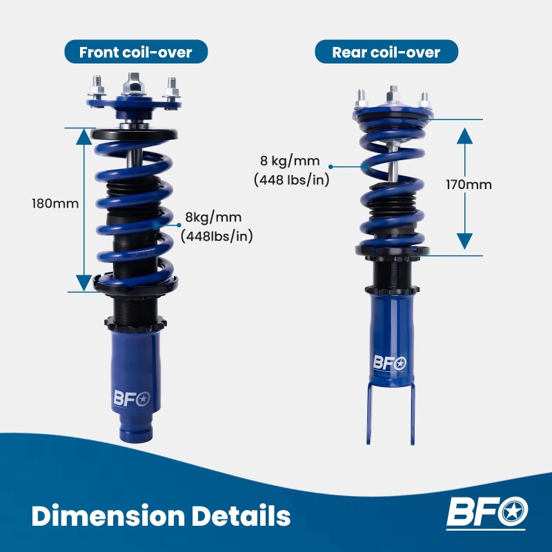 - Spring rate Front: 8 kg/mm (448 lbs/in)