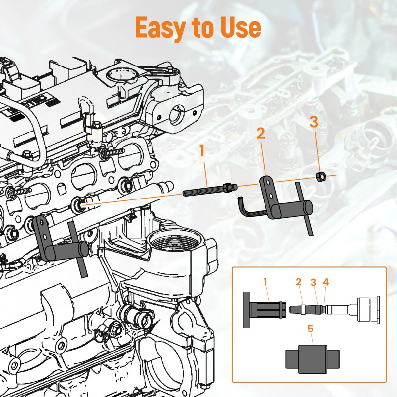 ❷ 6706 Injector Rail Assembly Remover Tool replaces for EN-49248, used to evenly loosen the seat rings of all injectors and properly remove the direct injection fuel rail without damaging the injectors, cylinder head and rail mount assemblies.
