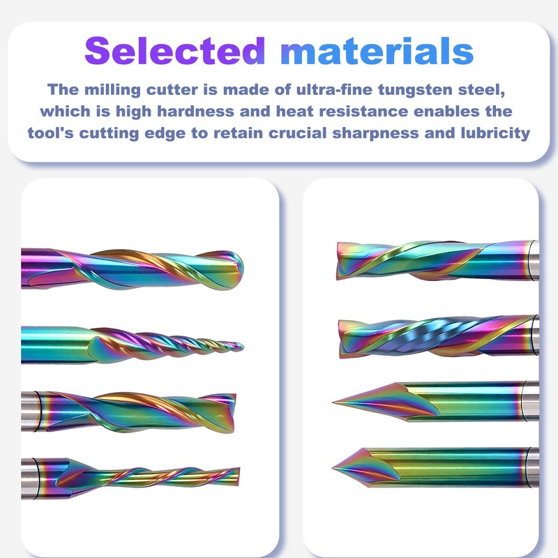 - 【Heavy-Duty High Performance】 Engineered for heavy-duty use, these CNC router bits excel in roughing operations, slotting, and deep cutting. The solid carbide structure minimizes the risk of breakage, ensuring reliable performance.