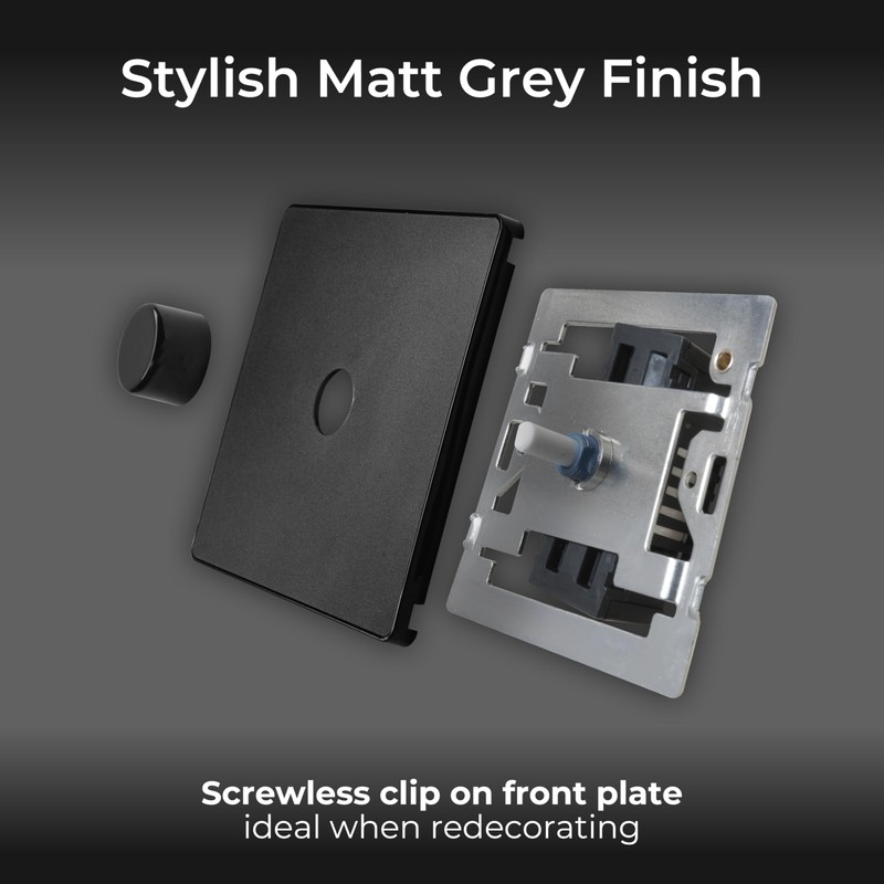 - STYLISH, CONTEMPORARY SINGLE DIMMER SWITCH: From BG Electrical, a matt grey finish with a smart, flat design with modern sensibilities - perfectly accenting, contrasting or blending sleekly into modern interior design
