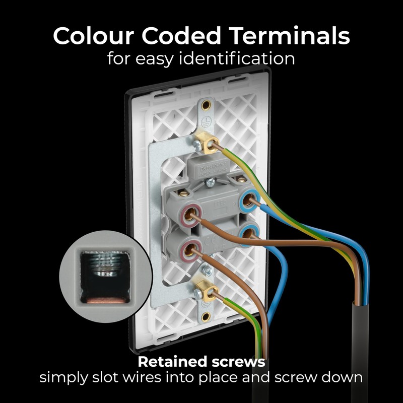 - COLOUR CODED CAPTIVE SCREW TERMINALS: Makes it incredibly easy to install and to connect the wires. Fits a 47mm back box, ideal for retrofit