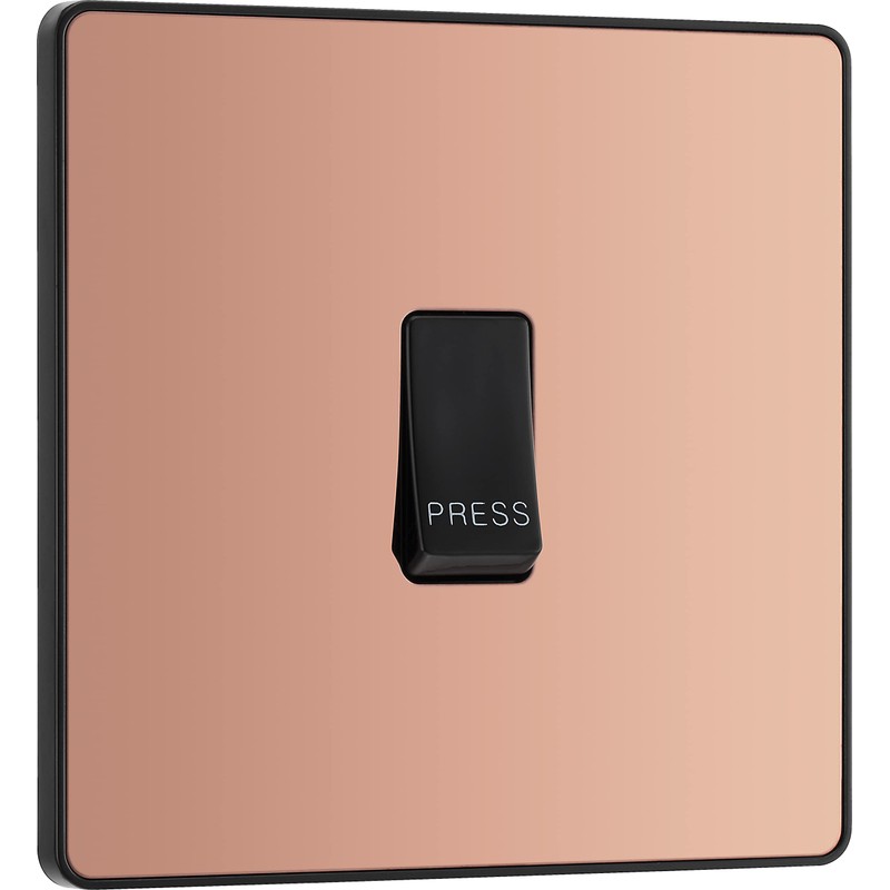 BG Electrical Single Retractive Press Switch, Screwless Front Plate, Round Edges, 1 Way, Evolve, Polished Copper, 10A, PCDCP14B