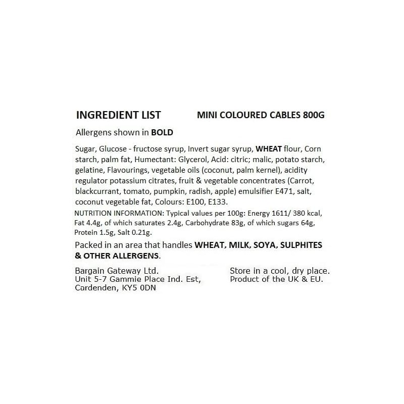 BG Pick & Mix Sweets Candy Pick n Mix Choose Your Sweetie Pouch 800g (- Mini Coloured Cables)