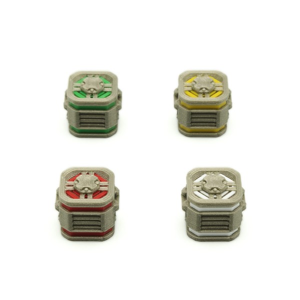 - Jetons 3D détaillés compatible with Nemesis et Nemesis: Lockdown. Set of 60 pieces: 15 boxes rouges, 15 blanches, 15 vertes and 15 jaunes