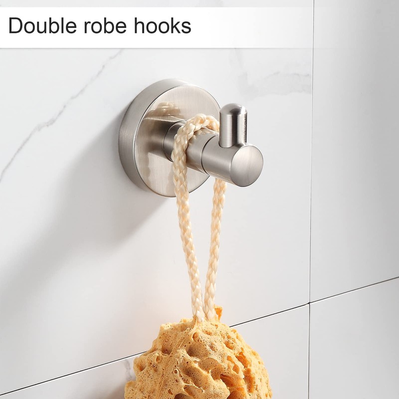 • 【Heavy Duty】Constructed in Zinc and stainless steel matal material,. Large weight capacity of 22lbs, strong enough to hold your robe, towel, coat, bag, pants and shirt, swimsuits, shower caddy or other stuff etc.