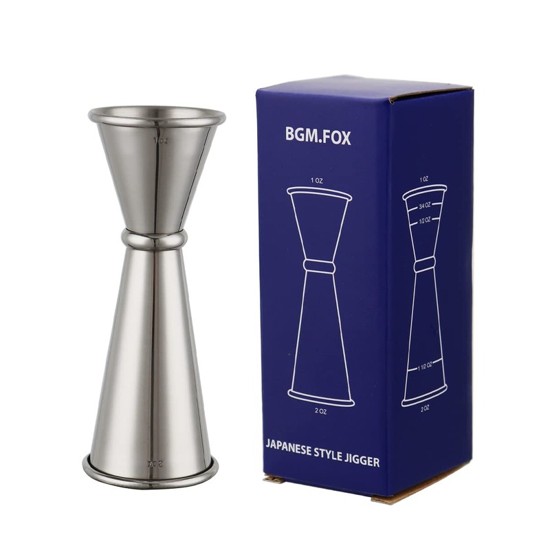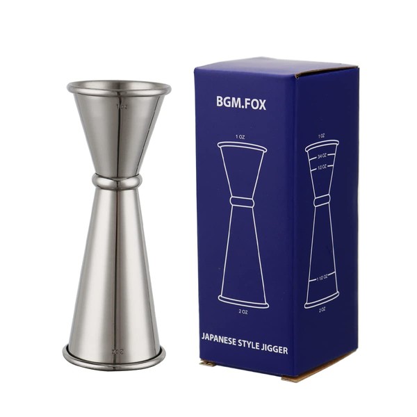 BGM.FOX® Japanese Style Double Jigger 2 oz 1 oz Cocktail Bar Jigger with Measurements Inside,Silver
