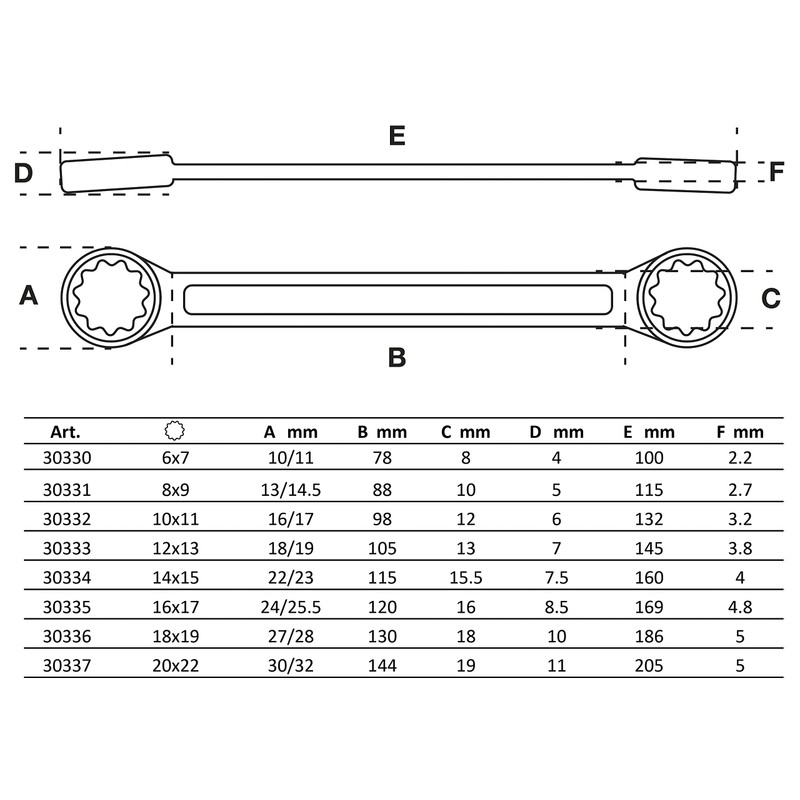 - double ring spanner, extra flat, 6x7 8x9 - 10x11 - 12x13 - 14x15 - 16x17 - 18x19 - 20x22 mm