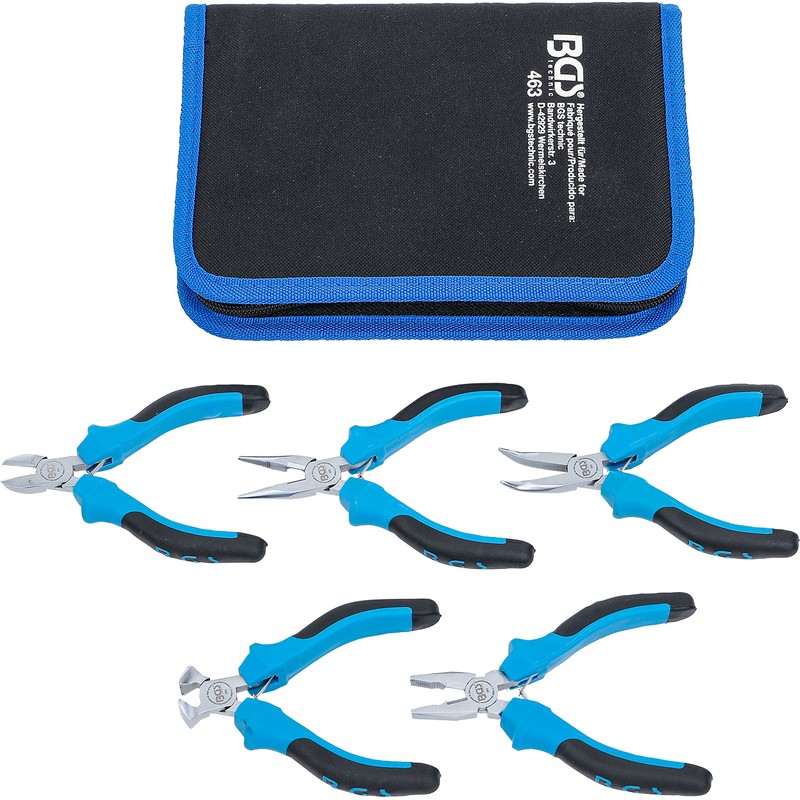 BGS 463 Precision Pliers Set, Silver/Black/Blue, Set of 5 Pieces