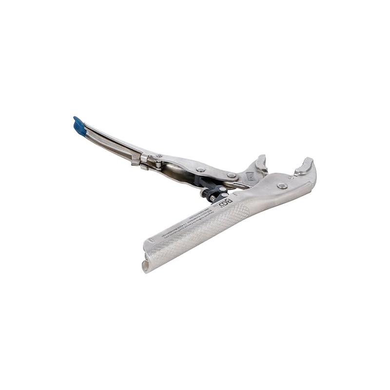 - special locking system keeps the pliers securely closed until unlocked | single hand operation | serrated clamping jaws, hardened and tempered | with adjustable screw and release lever