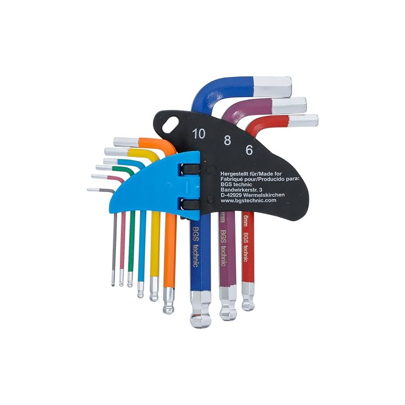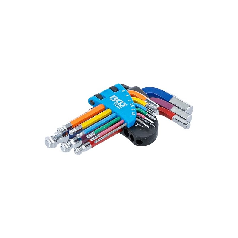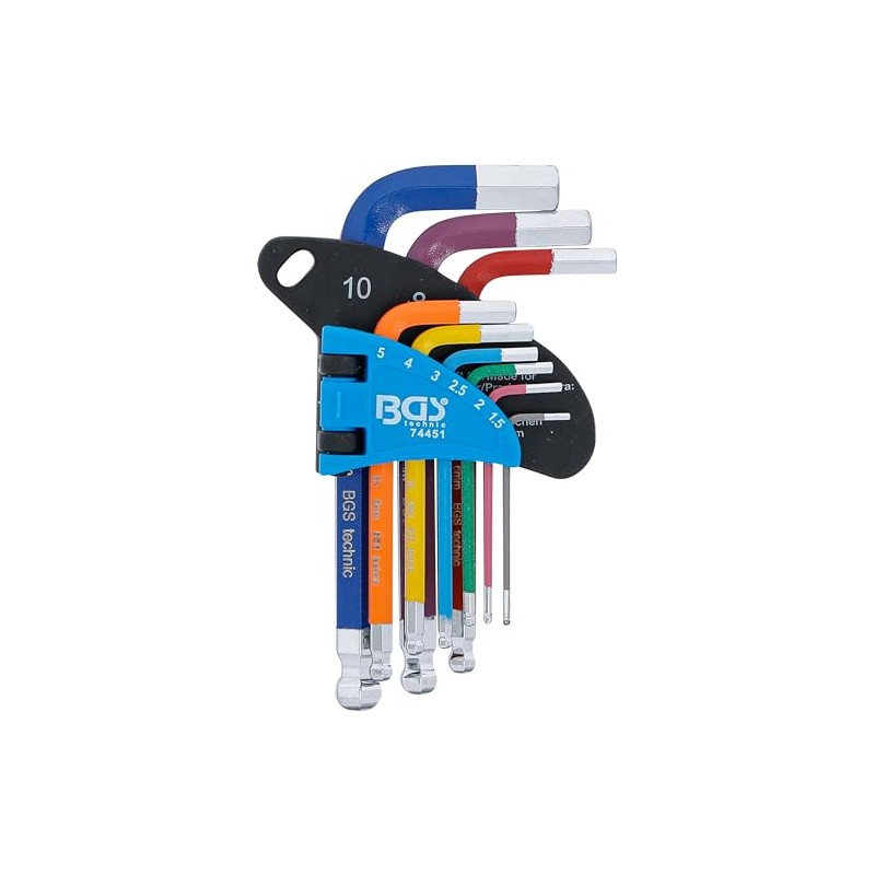 BGS 74451 Allen Key Set Multicolour Short Hexagon Socket with Ball Head 1.5 - 10 mm 9-Piece