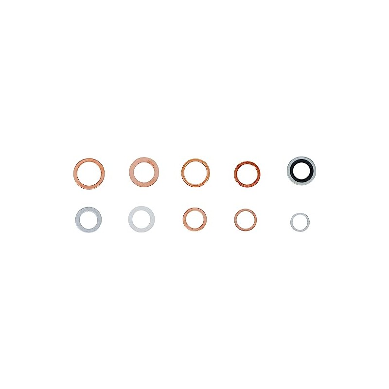 • 25 aluminium sealing rings inner diameter 12 mm x outer diameter 15 mm, thickness 1.5 mm, 30 aluminium sealing rings inner diameter 14 mm x outer diameter 22 mm, thickness 2.0 mm, 25 copper sealing rings (compressible), inner diameter 16 mm x outer diameter 22 mm, thickness 2.0 mm. mm | 25 mm | Copper sealing rings (compressible) inner diameter 18 mm x outer diameter 24 mm, thickness 2.0 mm