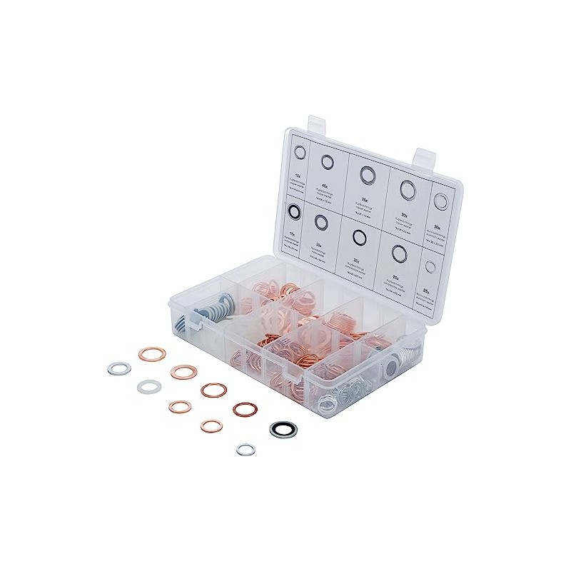 BGS 85225 | Sealing Ring Assortment | Copper, Aluminium, Nylon | 250 Pieces | Includes Assortment Box | Sealing Rings | Washers