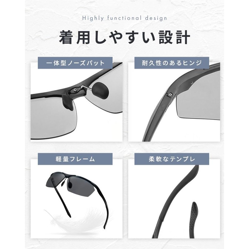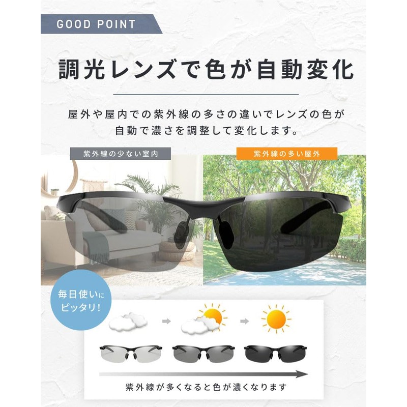 [bh life] サングラス 偏光 調光 スポーツサングラス メンズ レディース 偏光グラス 調光レンズ 偏光レンズ カラーレンズ UVカット ドライブ 紫外線カット 超軽量 釣り スポーツ ゴルフ 野球 運転用 (グレー)