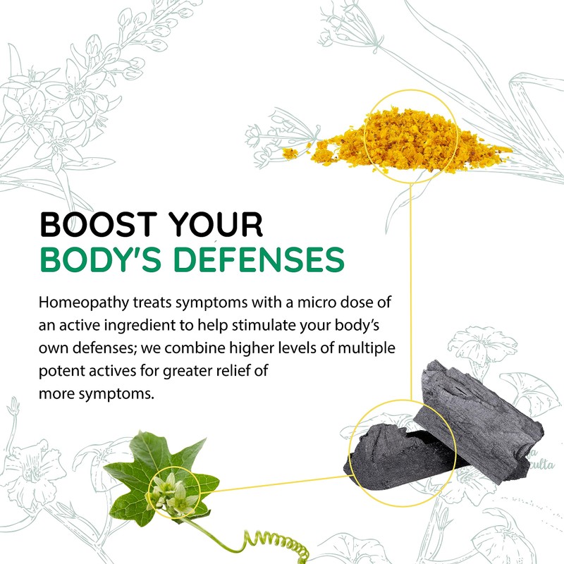 - BOOST YOUR BODY'S DEFENSES - Homeopathy treats symptoms with a micro dose of an active ingredient to help stimulate the body’s own defenses; we combine multiple potent actives, in multiple concentrations for greater relief of more symptoms.