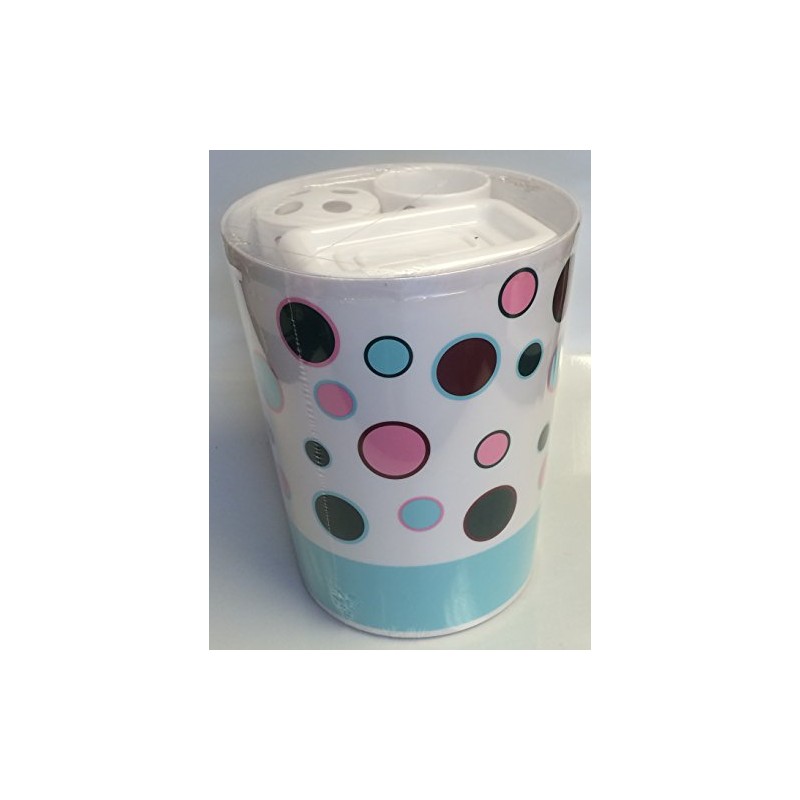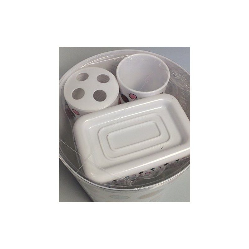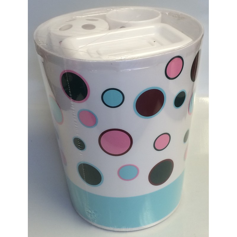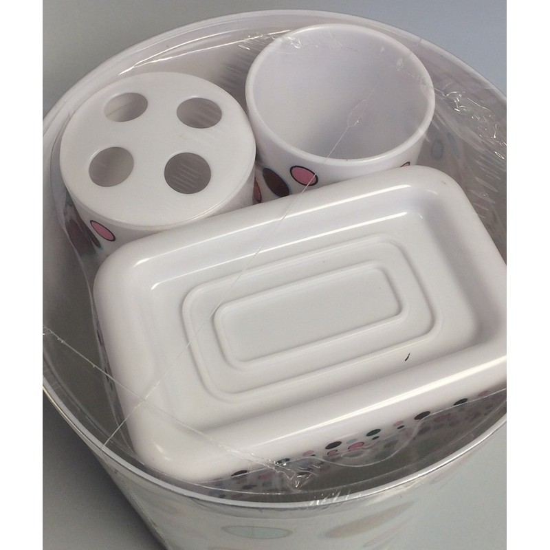 BHP Dots - 4 Piece Plastic Bathroom Set - Cup, Trash Container, Soap Dish, Toothbrush Holder
