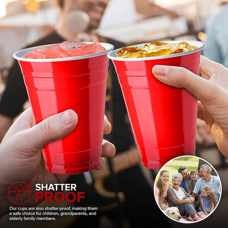 - Reusable Red Party Cups: Our red plastic cups are durable enough to be reused and are easy to clean. Simply wash by hand with warm water, mild dish detergent, and a non-abrasive sponge.
