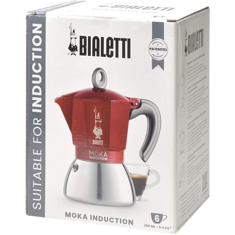 Bialetti New Moka Induction Coffee Maker Moka Pot, 4 Cups, 150 ml, Aluminium, Red, Compatible with Induction pan and Gas Stove: Italian Made