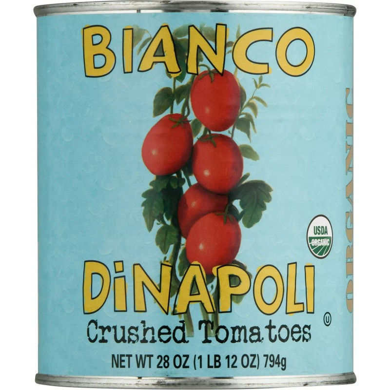 Crushed tomatoes in puree. USDA Organic. Organic. Certified Organic by Yolo Certified Agriculture. Mission: Connect the Dots: A seed, a field, and a quiet factory. That's how it begins each winter. It ends with the can of tomatoes you're holding. Our mission is to bring you the very best that California Agriculture and human ingenuity has to offer. Product: Produced from organically grown fresh picked California tomatoes, our Crushed Tomatoes are steam peeled, chopped and seeded, then blended with a rich puree. Perfect for Pizza, Pasta or Salsas. Chris Bianco: A James Beard award winning chef and founder of the critically acclaimed Pizzeria Bianco in Phoenix Arizona, Chris's entire career has been built on relationships with Farmers and Artisans supporting and celebrating the fruits of their labor. Rob DiNapoli: Since 1939, when Rob's Grandfather produced the first case of canned Apricots from his San Jose, CA factory the DiNapoli family have been delivering California grown and processed fruits and vegetables for the world to enjoy. Original Oil Painting: Leonard Bianco. BiancoDiNapoli Non-BPA can liner. Vine ripened California grown. Grown in the USA.