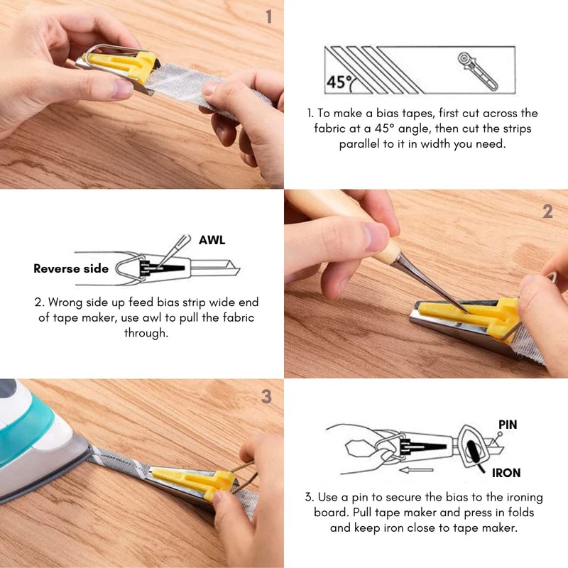 - EASY TO USE This bias tape maker kit can help automatically fold the fabric in half to create beautiful folds and edges for sewing projects. It is a good aid for your sewing, arts and crafts and makes it easier and more convenient, perfect for bias tapes of different sizes.