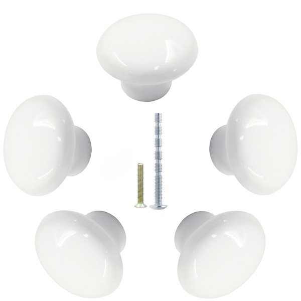 Biaungdo 5 Pack Retro Ceramic Cabinet Knobs, Round Drawer Knobs Pulls (White, 1.3 inches (diameter), 1 inch (height))
