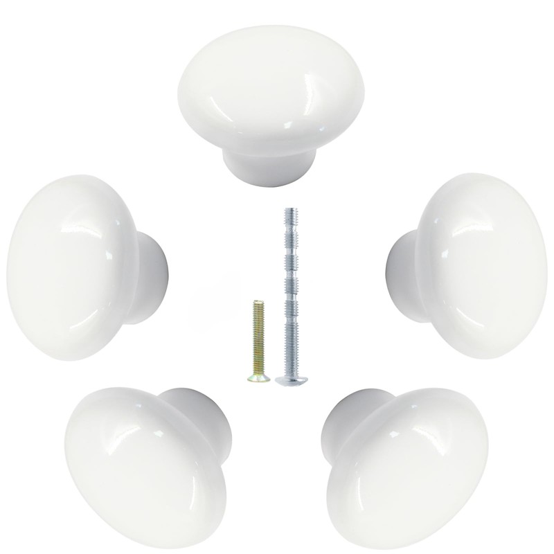 - Package & Size: The package includes 5 pcs round ceramic cabinet knobs with 2 different sizes of screws. The diameter of knob is 33mm/1.3inch and the height is approximately 25mm/1inch. The standard size ceramic cabinet knobs ensures a perfect match with your furniture