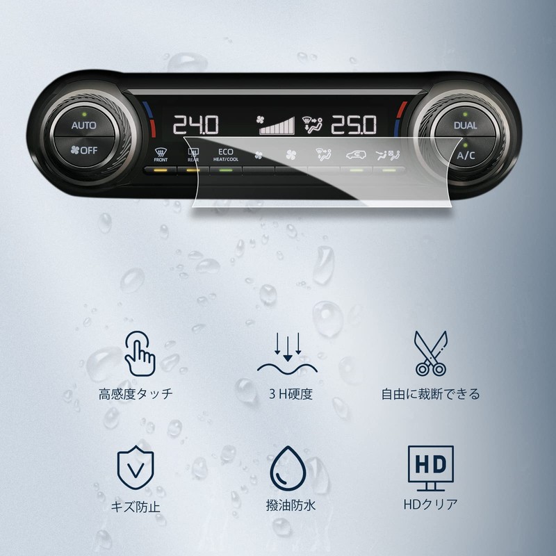 - (HD Clear/High Transparency, Scratch and Stain Resistant) High definition image quality, 99.9% high light transmittance, maintains vivid and beautiful images and prevents the effects of reflected light while driving, providing you a comfortable experience. We use advanced anti-fingerprint technology to provide a clean and safe product without worrying about fingerprints. Even if it gets dirty with water or oil, our film can effectively prevent the air conditioning display screen, extend the life of the screen and look brand new
