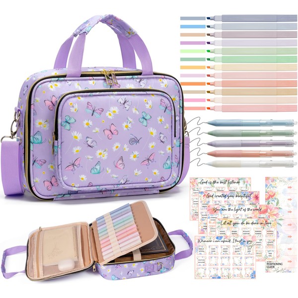 - ALL-IN-ONE SET: Along with the Bible cover case, you’ll also get 12 highlighters, 5 black gel pens, 75 Bible tabs and a tab positioning guide. This Bible Journaling Kit is designed to simplify your reading and note-taking process. Bible highlighters and pens no bleed, write smooth and dry quickly, help in your daily bible journaling without ruining your bible pages. With the alignment guide, applying Bible indexing sticky tabs has never been easier, making effortless scripture navigation