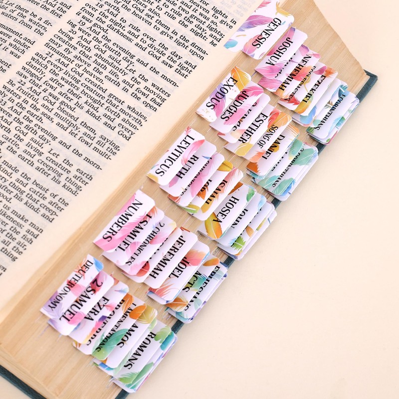 - Feather Bible Tabs: Crafted with luxurious, velvety material for a comfortable feel during Bible study, these laminated tabs blend durability with elegance for daily spiritual reflection.