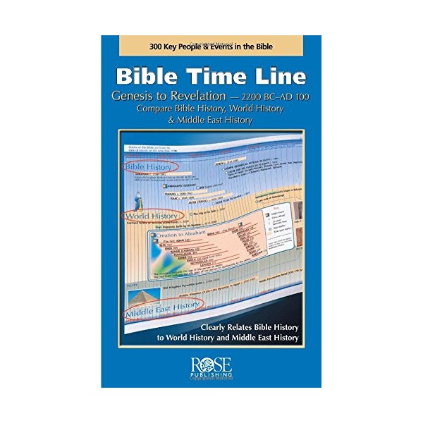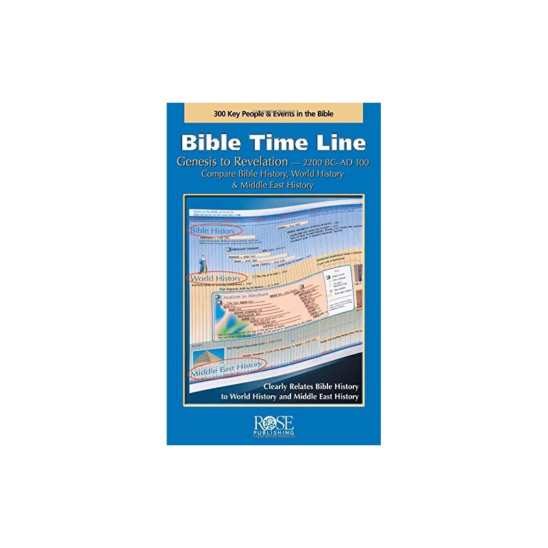 This Bible Time Line pamphlet shows hundreds of facts in biblical history. Includes dates of kings, prophets, battles, and key events. Compare Bible history, world history, and Middle East history side-by-side. Did you know that Buddha, Confucius, and the prophet Daniel all lived at the same time?, While the Sheng Dynasty was flourishing in China, Moses was leading the people out of Egypt during the Exodus?, The first recorded Olympic games in Greece were held at the time of Jonah?, The Greek historian Homer lived during the time of Isaiah, Amos, and Micah?, Mt. Vesuvius erupted and buried Pompeii during the apostle John'slifetime? Also includes colorful photos and illustrations. 10 pt. type makes it easy to read. Size 8.5" x 5.5". Fits in a Bible cover. Unfolds to 33" long.