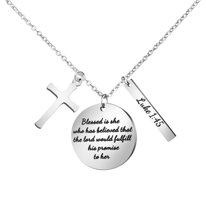 Bible Verse Cross Pendant Christian Necklace Prayer Charm Faith Religious Jewelry for Women (Blessed is she who has believed that the lord would fulfill his promise to her)