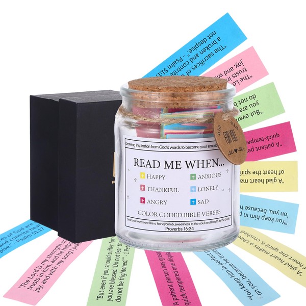 Bible Verse Jar, Read Me When Bible Verses Jar for Emotions and Feelings, Bible Verses in a Jar, Christian Gifts For Women Men Mom, Scripture Faith Prayer Hope Jar Religious Birthday Gifts for Her