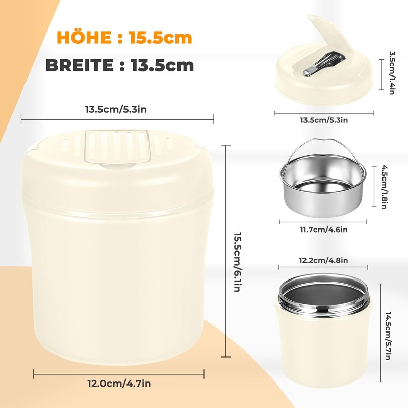 Bibykivn Thermal Food Container - 1200 ml Stainless Steel Heat Retaining Container with Spoon, Thermal Bowl with Lid, Leak-Proof Heat Container for Soups, Yogurt, Porridge (White, 1500 ml)