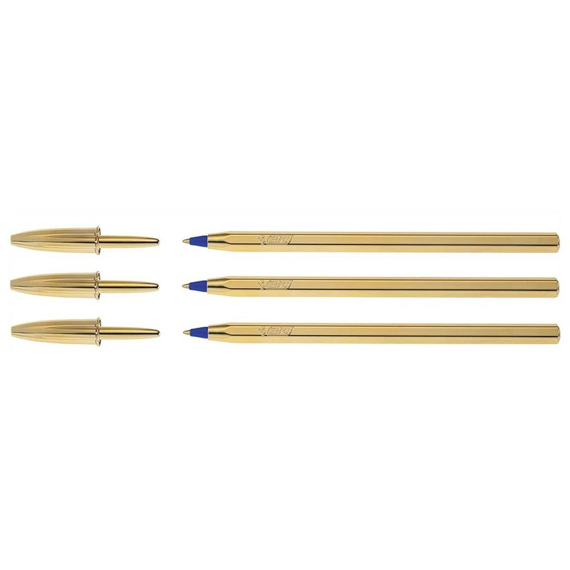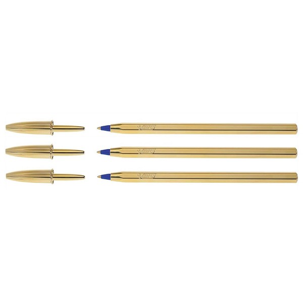 Bic Ballpoint Pens 3 Crystal Celebrate Limited Edition PTE Blue Body Gold