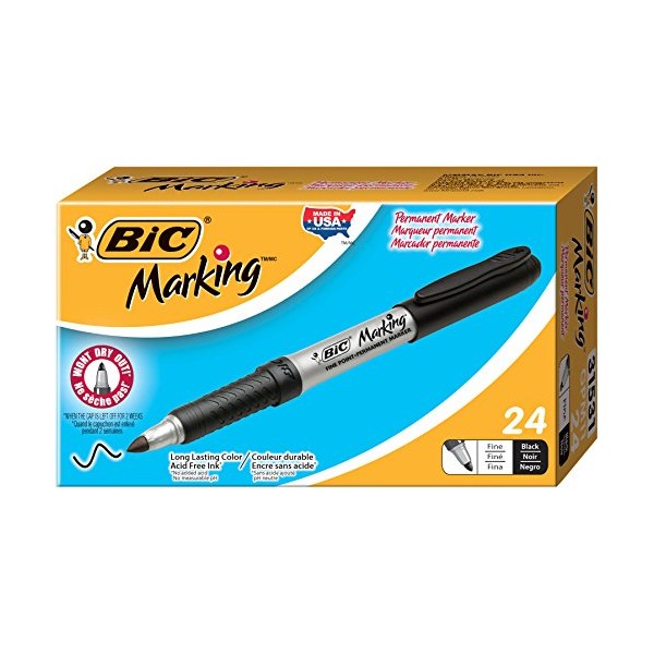 BIC GPM241-BK Marking Fine Tip Permanent Marker, Black, 24/pack